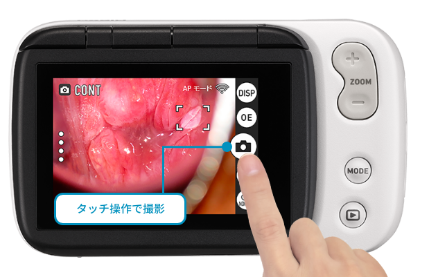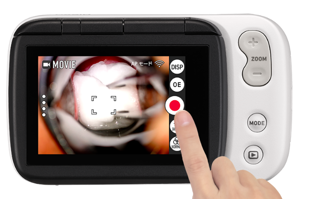 液晶モニターのタッチ操作で撮影することができます。また、動画撮影では録画の開始/停止、ピント合わせ位置の変更ができ酢酸加工診などの変化する様子を記録することができます。