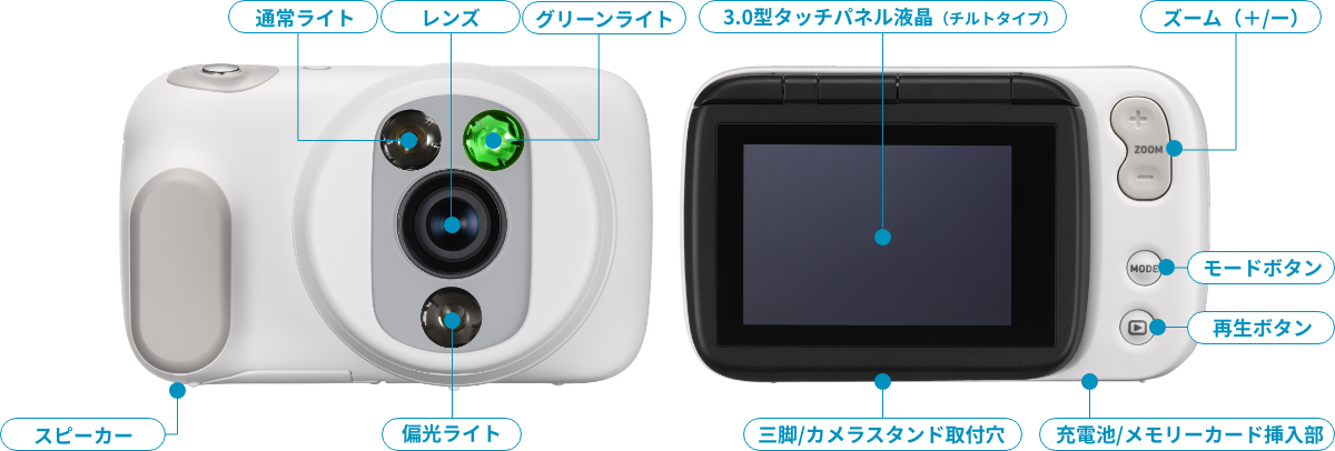 ワンシャッターで通常光/グリーン光/偏光の3種類の画像が撮影可能です。