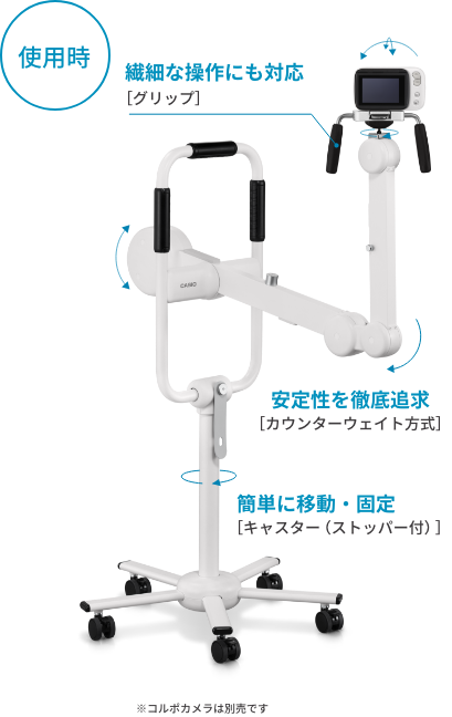 撮影のための操作性を追求したスタンド(別売品/非医療機器)。