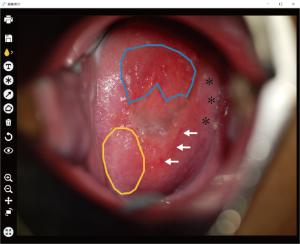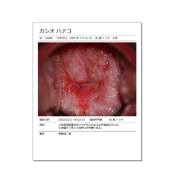 他の医療機関への紹介、他の医師への検討依頼用に、画像付きの病変情報を印刷することができます。