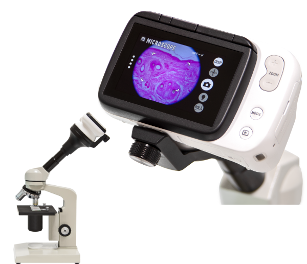 顕微鏡の接眼レンズ部にダーモカメラを取り付けることができるアダプターです。接眼レンズ挿入部の内径は23.2mmと30.0mmに対応しています。HDMIケーブルを使用すれば顕微鏡での観察を外部モニターへ映すこともできます。