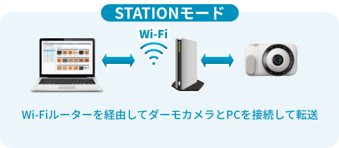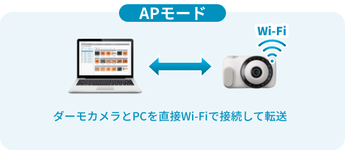 Wi-Fiでの転送には、APモード(ダーモカメラとPCを直接無線接続)とSTATIONモード(ルーター経由でダーモカメラとPCを無線接続)があります。自動転送および一括転送に対応。Wi-Fi環境がない場合は、USBケーブルやメモリーカードでのデータ取り込みも可能です。