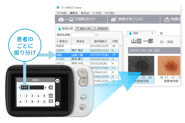 IDを入力して撮影した画像は、D’z IMAGE Viewer Dで自動的にIDごとに振り分けて登録されます。
