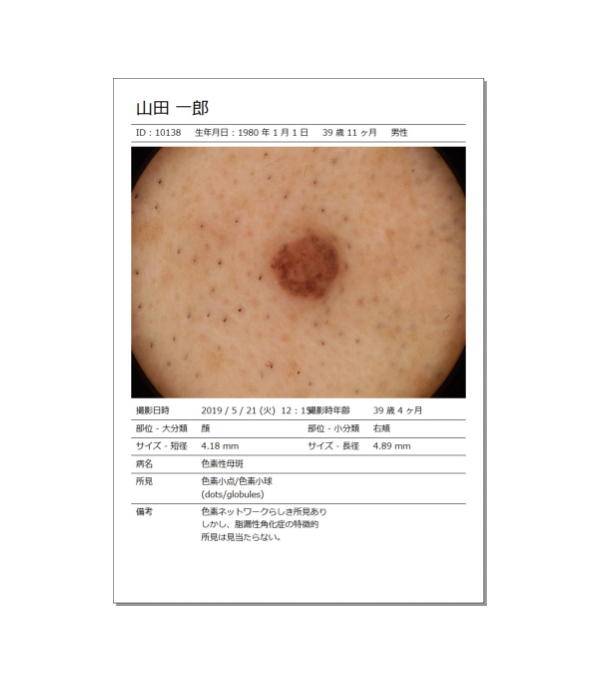 他の医療機関への紹介、他の医師への検討依頼用に、画像付きの病変情報を印刷することができます。