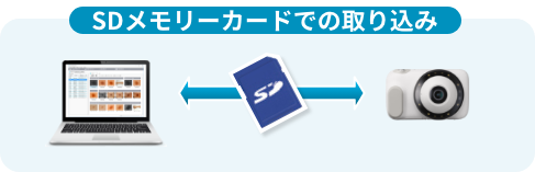 インポート機能を使って、指定した場所(ドライブやフォルダー)から取り込みします。