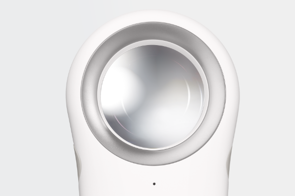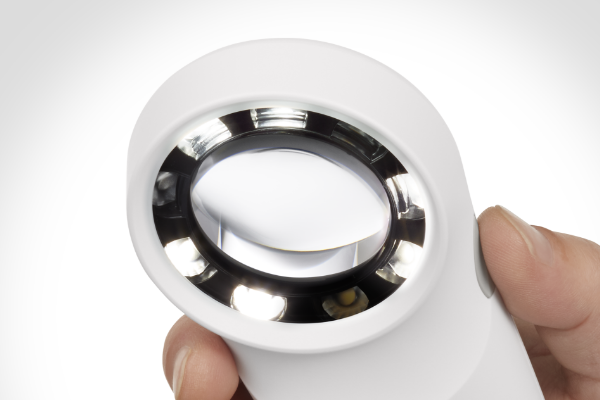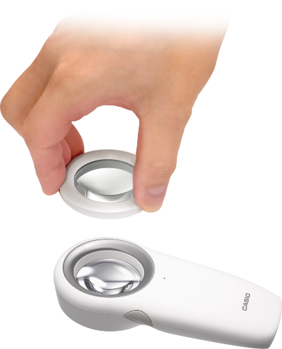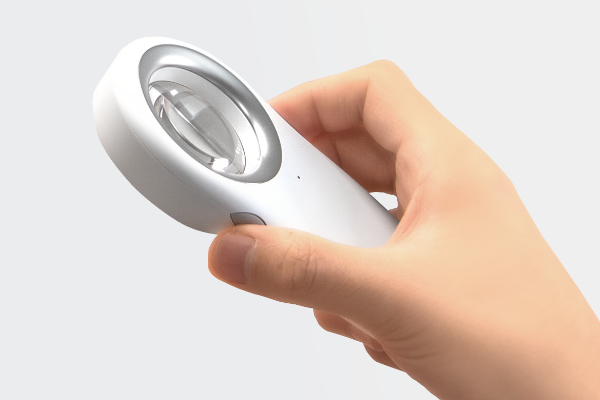 視野が広く歪みの少ない直径40.5mmの大口径レンズを使用。ピントが合わせやすいため、患部に顔を近づけたり、細かく位置を調整したりすることなく、スムーズに病変を観察できます。レンズ倍率は6倍です。