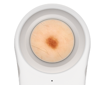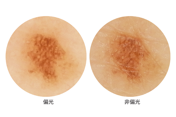 簡単なスイッチ操作で、LEDライトの偏光/非偏光を切り替え可能。偏光は皮膚内面の色素分布、非偏光は皮膚表面の状態を観察するのに適しています。