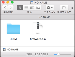 カメラのルートディレクトリ(SD カード)にコピーした「firmware.bin」は自動的に削除されます。