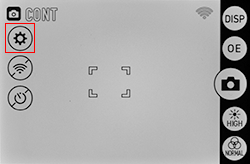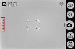 コルポカメラの電源が入った状態で、画面左側のメニューボタンをタップしてメニューを表示します。
